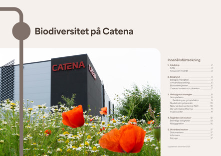 Ett av Catenas hållbarhetsmål är att hela vårt fastighetsbestånd ska vara nettopositivt gällande biodiversitet till 2030. Det innebär att vi ska kunna påvisa en större positiv än negativ påverkan på alla våra fastigheter. Biodiversitet – variationsrikedomen bland levande organismer och naturmiljöer – är en förutsättning för allt liv på jorden.